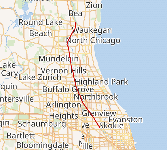 28 miles in length from Niles to Gurnee